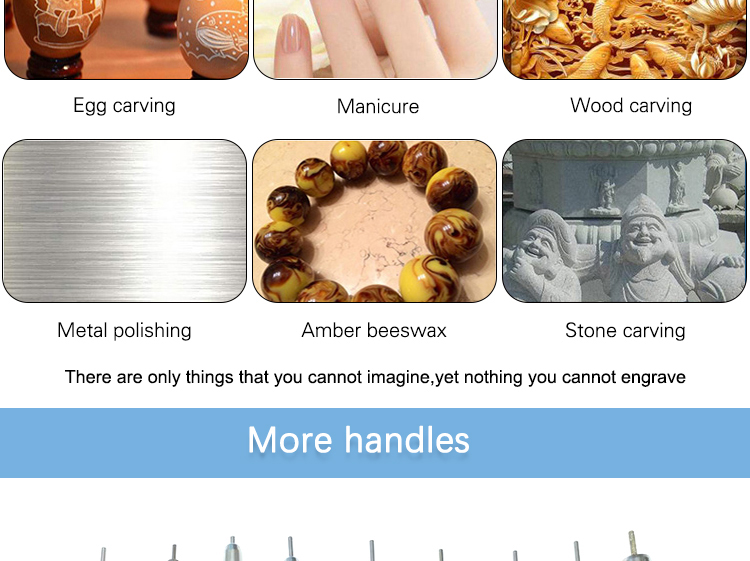 1. Name: 103 double-lock Brushless Handpiece 2. Rotary speed: 50000rpm 3. Torque: 8N.cm 4. Chuck: 2.35mm Standard. (Pls note if you need 3.0mm or 3.175mm chuck, please leave message to us!) 5. Weight: About 300g 6. Package: Bubble bag+foam+carton 7. Handpiece color: Blue Features: 1. Forward or Reverse direction switch suitable for any right-handed or left-handed use 2. Multi-using: Carving, Engraving, Routing, Grinding, Sharpening, Sanding, Polishing 3. Latest snap-on handpiece lock feature 4. Easy bit change using no tools Packet Include: 1x 103 double-lock Brushless Handpiece 1x Wrench