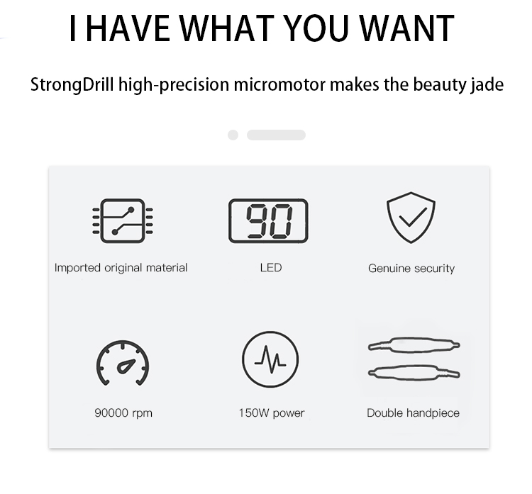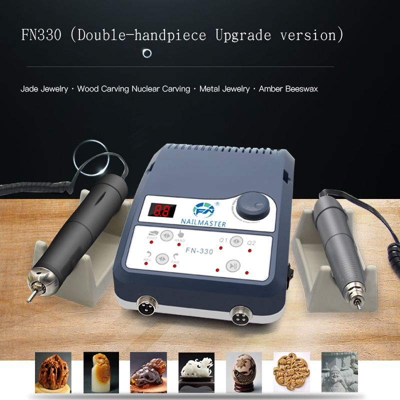 Micromotor Equipment High Rotation 90000rpm Nail Master Jewelry Polish Machine Two Handpiece for Polishing Wood Stone 150W FN330