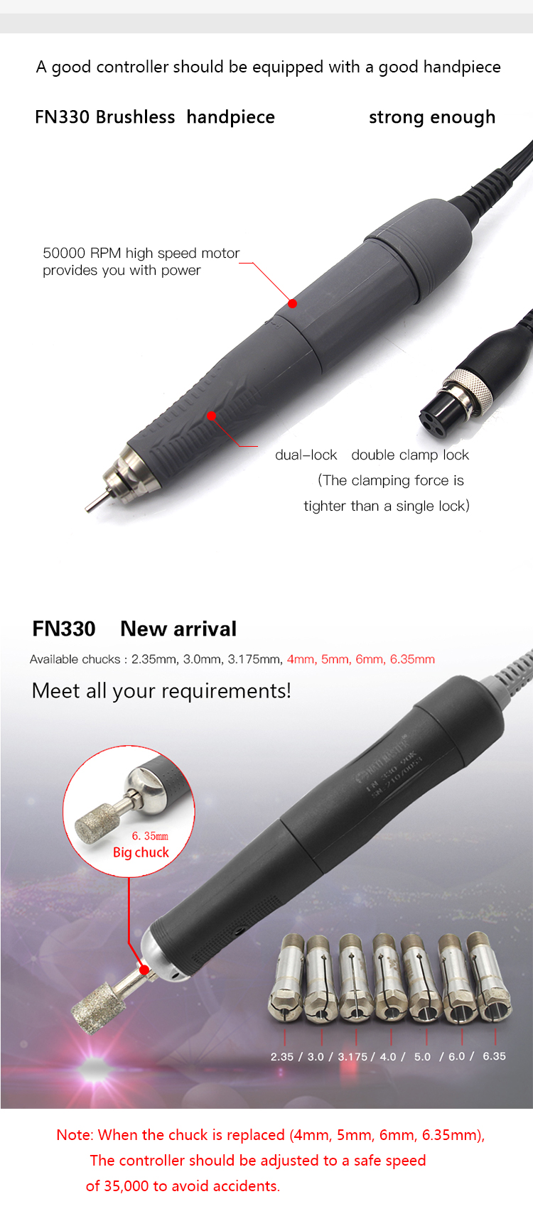 2. FN330 brushless handpiece (default 2.35mm chuck)