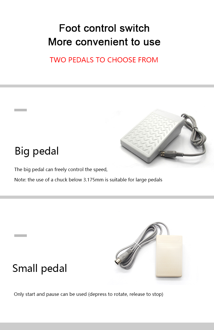 Product features : 0-90000 rpm infinitely variable speed, can adjust the direction, equipped with foot switchThe pedal can freely adjust the speed